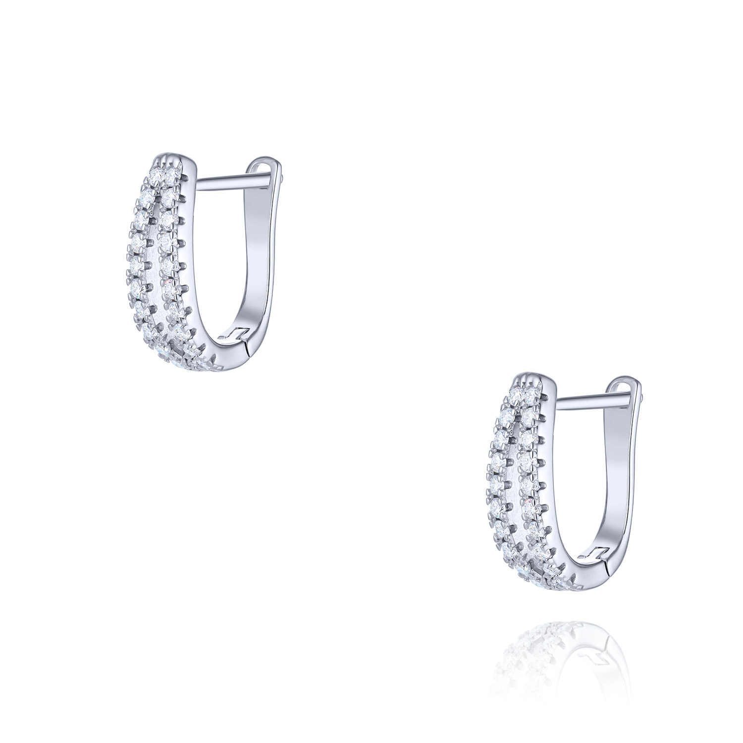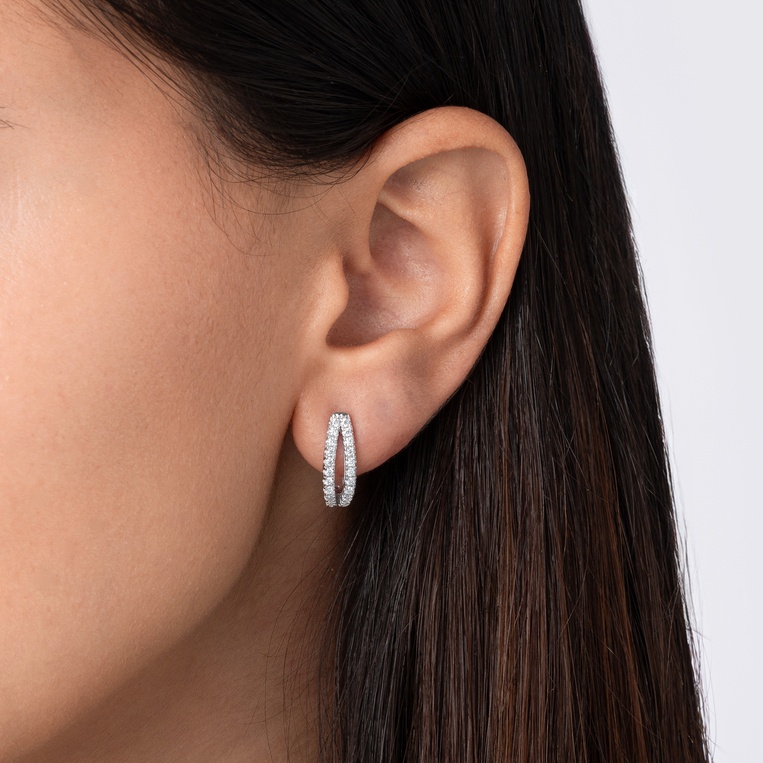 עגילי דאבל משובצים אבני מוזונייט, סגירת קליפס, עשוי כסף סטרלינג.