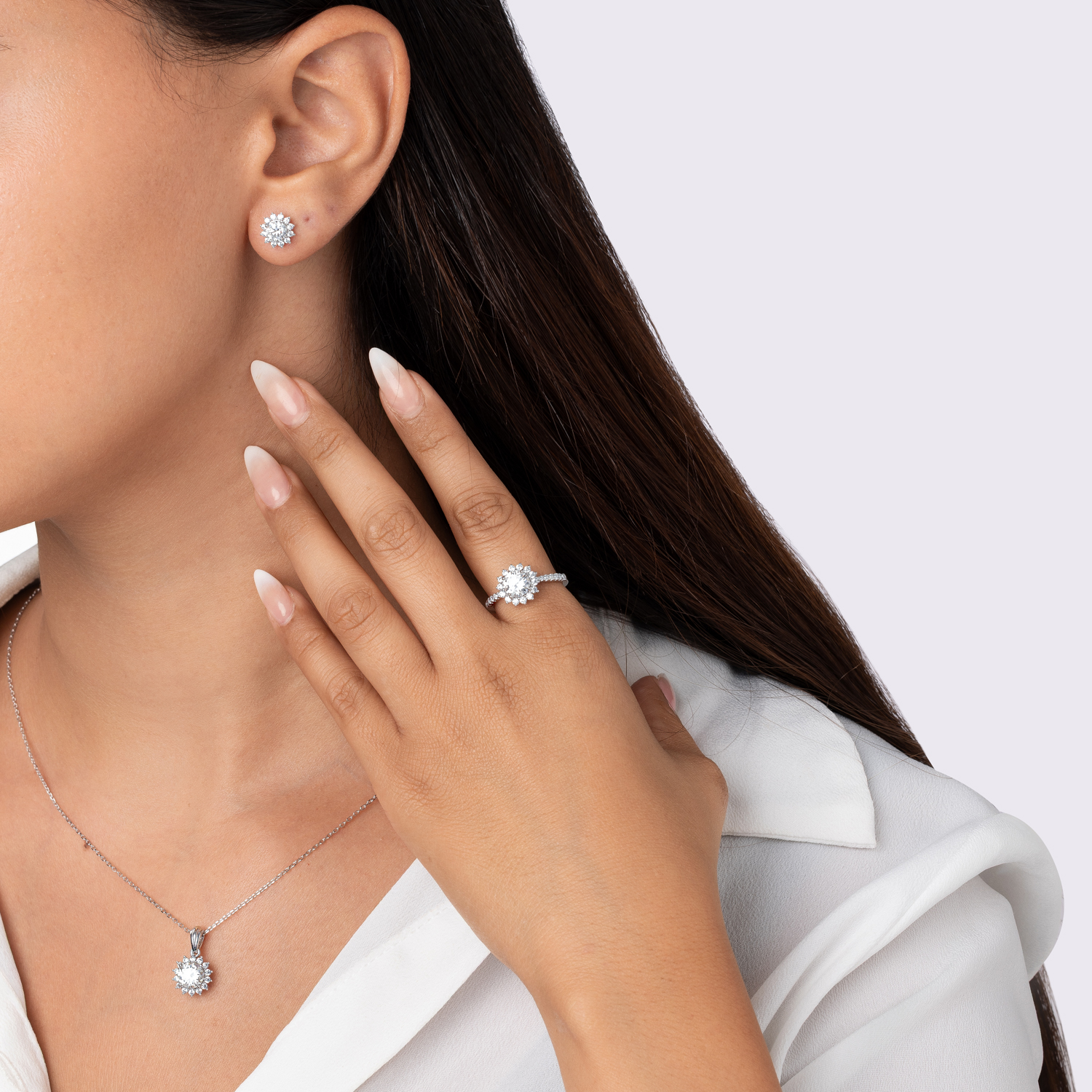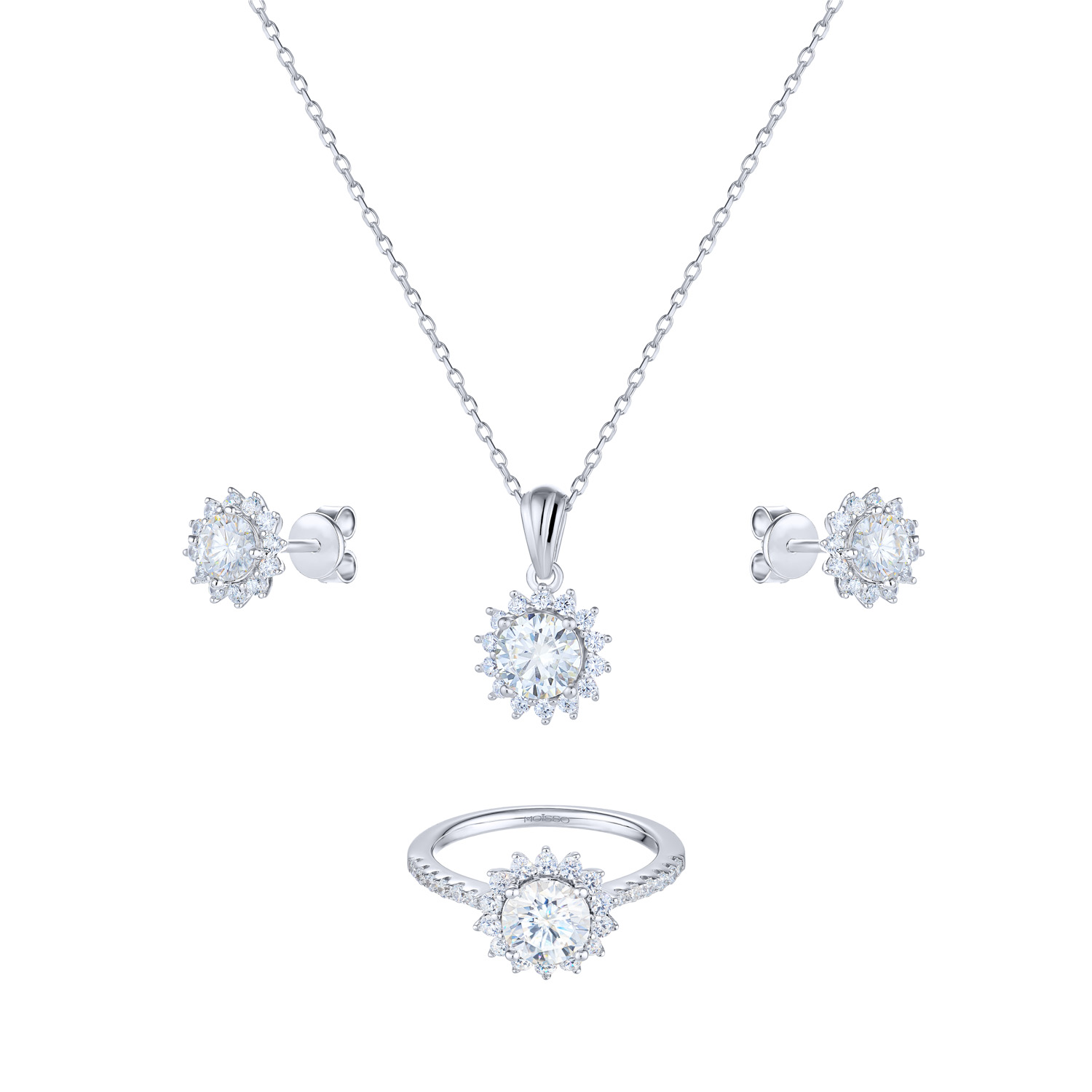 סט עשוי כסף סטרלינג מורכב משרשרת, עגילים וטבעת.