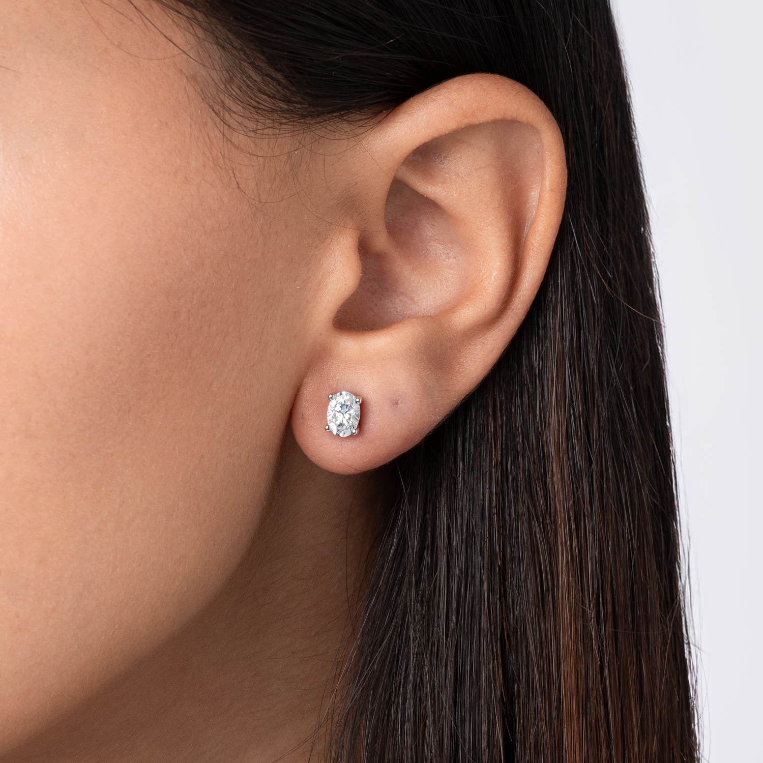 עגילים צמודים בשיבוץ אבני מוזונייט אובל, עשויים כסף סטרלינג.